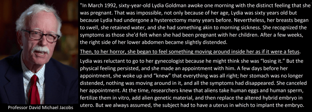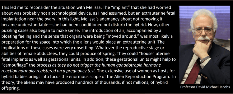 See previous post on Dr Jacobs entitled: Dr. David Jacobs: Alien Breeding Program